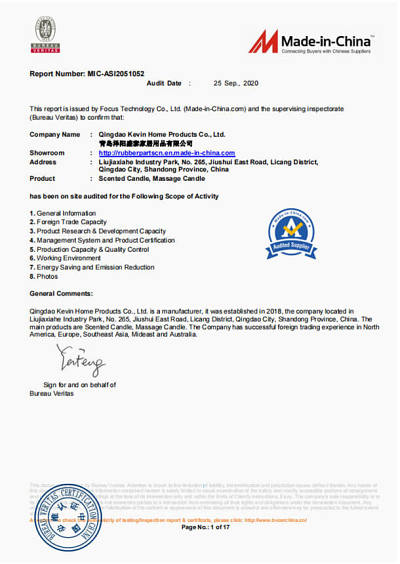 Qingdao Kevin Home Products Co., Ltd. insiste pour fournir des bougies à combustion propre à nos clients qui font partie de cette gamme depuis plus de 15 ans. Nous fabriquons maintenant des bougies d'huile de massage, des bougies parfumées , un diffuseur de roseaux et d'autres types de parfums sur le marché.